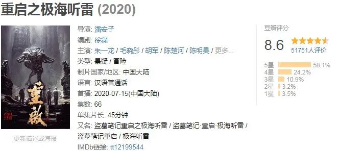 但《沙海》輸在了敍事邏輯,最終評分6.5分,將將及格。這也是當時該系列影視改編在豆瓣的最高評分。