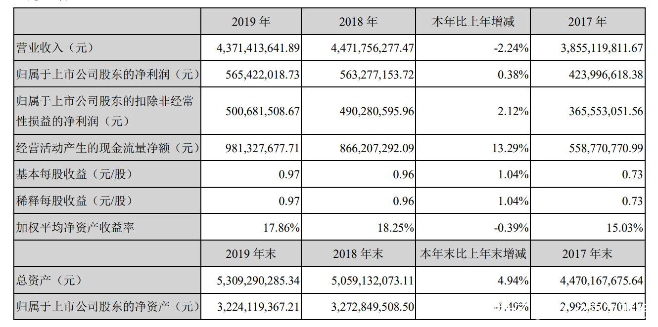 據葵花葯業2019年年報顯示,2019年葵花葯業實現營業收入43.71億元,同比減少2.24%;歸母淨利潤為5.65億元,同比僅微增0.38%,與2018年32.85%的增長相比,增速出現斷崖式的下滑。