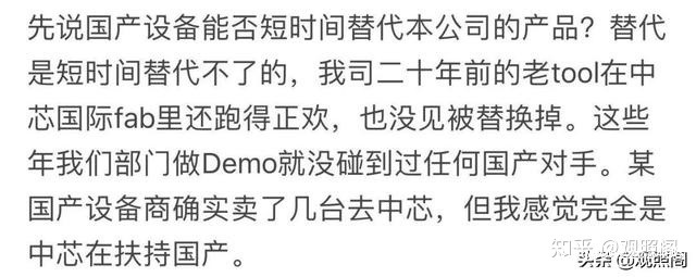 引用美資某壟斷設備商員工的説法——