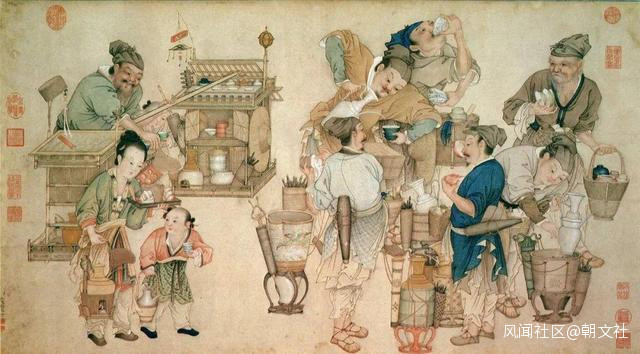 發展到“明清年間”,“冷飲業”這個朝陽產業,也在全國紅紅火火。貴族士大夫們夏日品嚐的各類“冰酪”,早就花樣翻新。城市裏的普通老百姓家,夏季裏飲用“冰水”“冰鎮酸梅湯”也成時尚。明代《帝京景物略》記載,每年立夏之後,北京城裏小販,就開始走街串巷“賣冰”。江南的許多城市,每年都要從北方大量“買冰”儲藏。