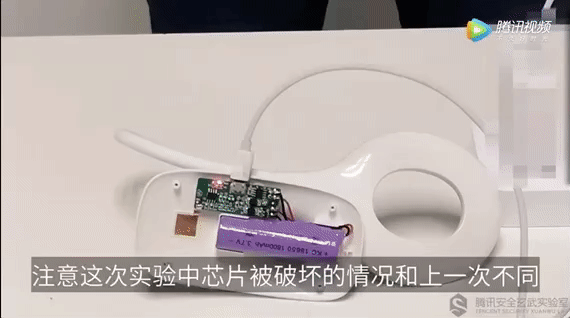 玄武實驗室測試視頻中被攻擊着火的電子元件