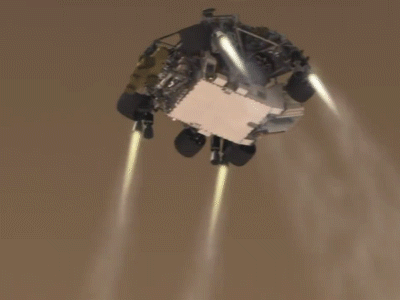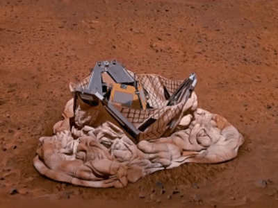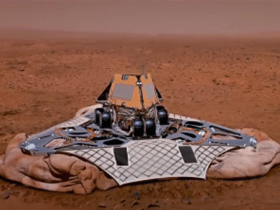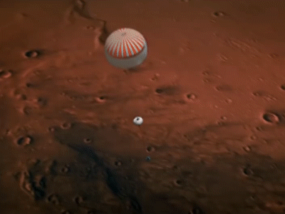 (天問1號着陸器與火星車分離動畫想象圖,圖片來源@央視新聞)
