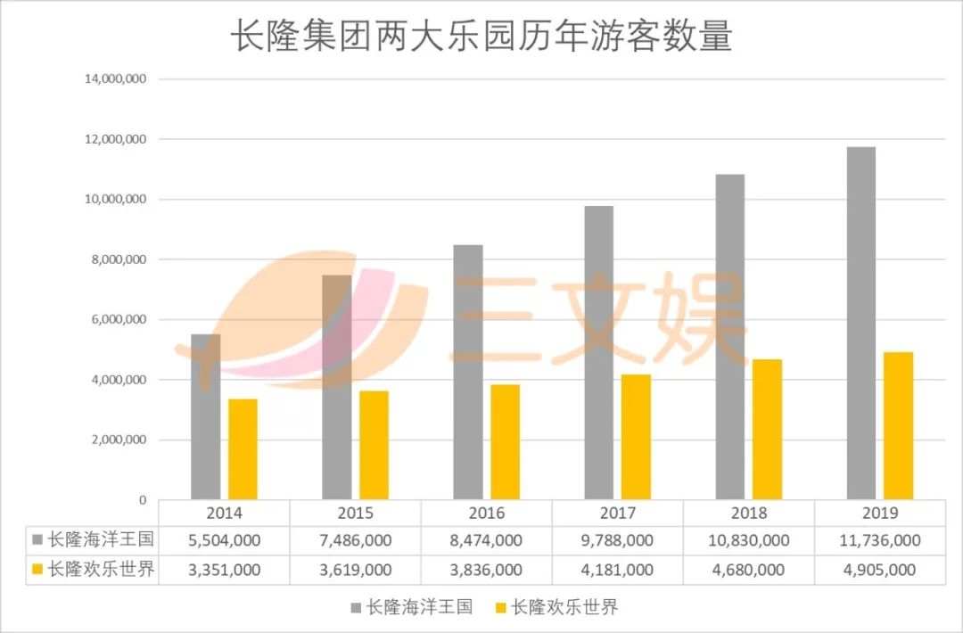 表現一貫強勢的長隆集團在只有5座樂園的基礎上,實現了3701.8萬年度遊客總數,同比增長8.9%。