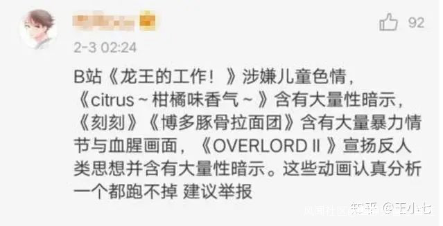 當時有人哀嚎説本來自己想要舉報別的動漫,結果自己的喜歡的動漫也被封了。
