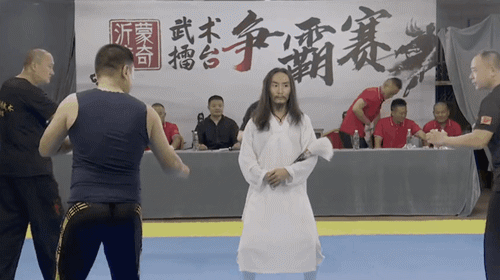 據澎湃新聞等媒體24日報道,日前,一段某武術“大師”靠着揮動毛筆加上怪叫聲放倒四名壯漢的視頻,在社交網絡上引發熱議。7月19日,視頻展示內容所在地的山東臨沂市武術運動協會發文回應,稱相關賽事系違規辦賽,有關部門已經介入調查。
