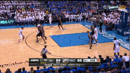 16年季後賽是杜卡兩人最後一次完整的系列賽對位。其實細數16年,奇人奇事奇蹟迸發。英超萊斯特城草根逆襲登頂,歐洲盃C羅帶着葡萄牙小組賽三連平,硬是靠着賽制改革出線最終奪冠!NBA這邊,西決,總決賽兩度上演驚天逆轉,劇情一波三折,跌宕起伏。馬刺雷霆整個系列賽的觀感,小卡對上KD,還是略遜一籌。這裏替小卡説一句,在馬刺的防守配置,小卡是外線防守排頭兵,承擔的防守任務最為艱鉅,對位KD是本職。一號位彼時帕克年滿34,直面威少,無論體型身高,都是錯位。雷霆落到陣地戰威少低位坐打帕克這招,打到了馬刺的七寸,內線一旦協防就要漏掉海王,內線不補,威少吃死了帕克,以及威少海王啓動擋拆也是這個路子,G3馬刺選擇內線回收,海王僅僅兩分,但是威少爆了31分。G4馬刺改變策略夾擊威少,威少雖僅得14分,但是15記助攻把海王喂到16分。顧此失彼下馬刺很多時候只能無奈祭出小卡第一線對位威少。內線這邊。鄧肯太老,阿德太軟,迪奧太慢,西爺太矮。雷霆雖然內線只有三人輪轉,但籃板球着實爆的馬刺叫苦不堪,小卡在內線一端,同時也要兼顧卡位以及籃板的控制保護。這是系列賽的兩個縮影,防守端,馬刺的人員防守配置兼顧不了雷霆二少的兇猛火力,所以小卡需要耗費大量精力投入到防守一端,進攻輸出自然大打折扣。
