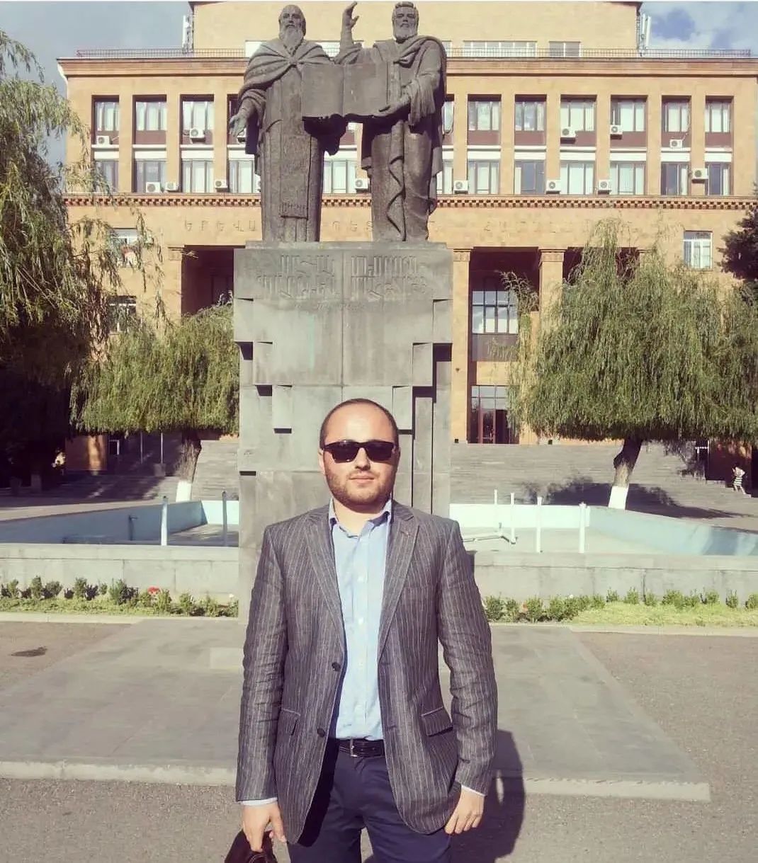 ● 本文作者在任教的國立埃裏温大學教學樓前 / 作者供圖