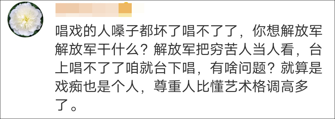 解放軍戰士也許不懂戲,但他們對台上的藝人沒有惡意。解放軍戰士們可能不具備所謂的“藝術修養”,但他們依然是一批好觀眾。