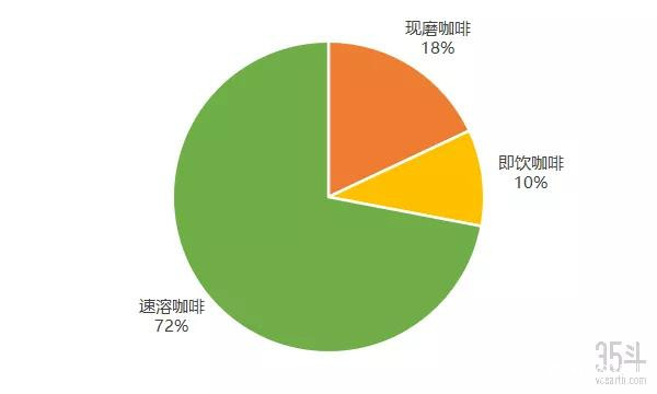 以現磨、即飲、速溶三大咖啡品類為研究基礎,通過數據整理,可以清楚地瞭解,中國咖啡在細分市場下,速溶咖啡佔據了大比例份額。對於還在發展中的市場而言,72%的佔比是情有可原的:用户培養階段,速溶咖啡方便、快捷、高性價比的優勢更容易切入到中國大眾消費者的用户需求。而屬於線下市場的現磨咖啡佔比18%,儘管乍看空間相對狹窄,但對接高端市場的精品現磨咖啡的市場爭戰從未止戈。