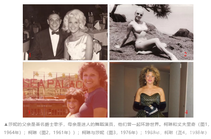 ▲莎妮的父親是著名爵士歌手,母親是迷人的舞蹈演員,他們曾一起環遊世界。柯琳和丈夫裏奇(圖1,1964年);柯琳(圖2,1961年));柯琳與莎妮(圖3,1976年);1988年,柯琳(圖4,1988年)
