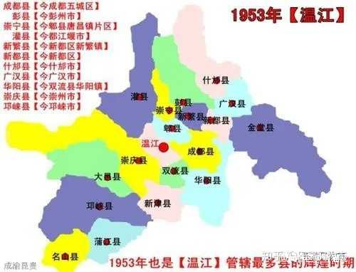1.温江地區温江地區就是前面説的“城鄉分治”理念的產物,其實温江地區管的這些縣,幾乎都是以前成都府的地盤,只是在“城鄉分治”理念下,成都只管城區了,這些縣就交給地區去管吧。