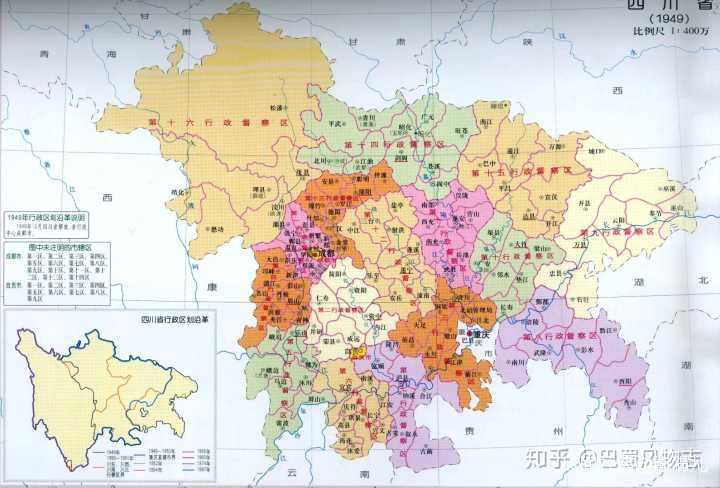 這是1949年代的四川省政區圖(不包括西康省),我認為當時的地級行政區劃分是比較合理的。