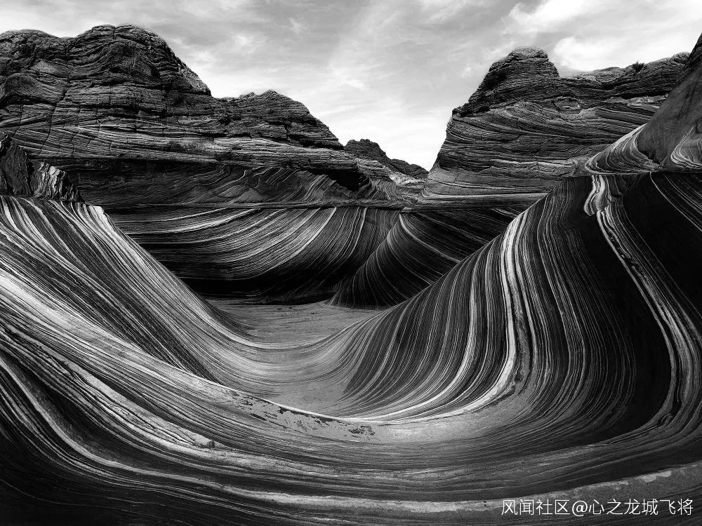 照片拍攝地點位於亞利桑那州大理石峽谷,劉丹表示“原片線條和紋理所體現的那種韻律感已經很吸引人了,後期我把圖片調成了黑白,讓照片的紋理看起來更加迷人”。