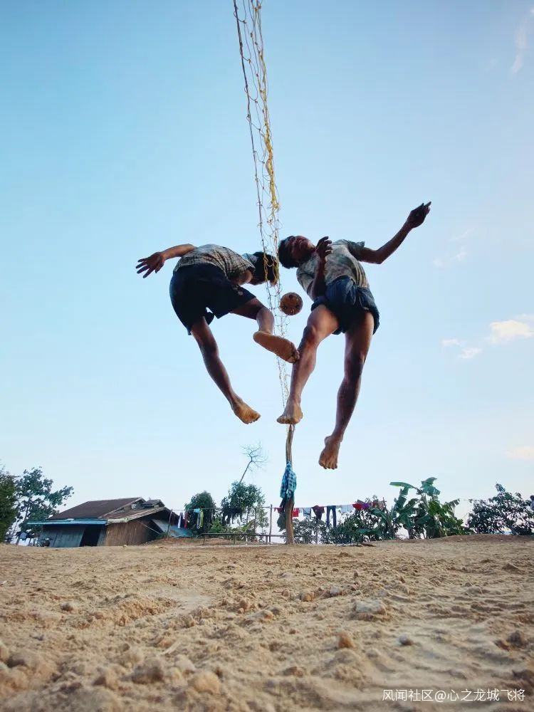 鏡頭中男孩們正在打藤球。為了捕捉更衝擊性的畫面,劉丹直接趴在球網下方,手機倒置,攝像頭貼近地面完成。