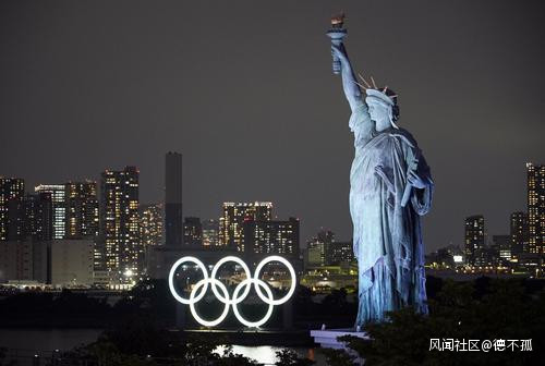 ▲7月23日至26日是日本民眾的四連休,原本四連休是為東京奧運會開幕而設。這是7月16日在日本東京台場海濱公園拍攝的奧運五環標誌和自由女神像。新華社發