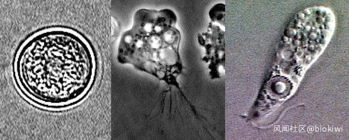 而當環境合適時,它就會去掉“金鐘罩”,而露出了另一幅嘴臉——滋養體,這時的食腦蟲可以依靠自己靈活的細胞膜移動(可以腦補一下史萊姆的形態),並且開始進行復制繁衍;