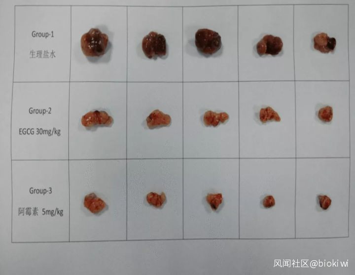 有趣的是,這兩位小學生的實驗結果還非常顯著:注射了茶多酚的小鼠,腫瘤大小相比於生理鹽水的對照組明顯變小了。