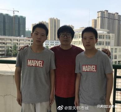 武漢新洲一中的一對雙胞胎兄弟袁睿麒、袁睿麟,分數一模一樣,同為理科664分!