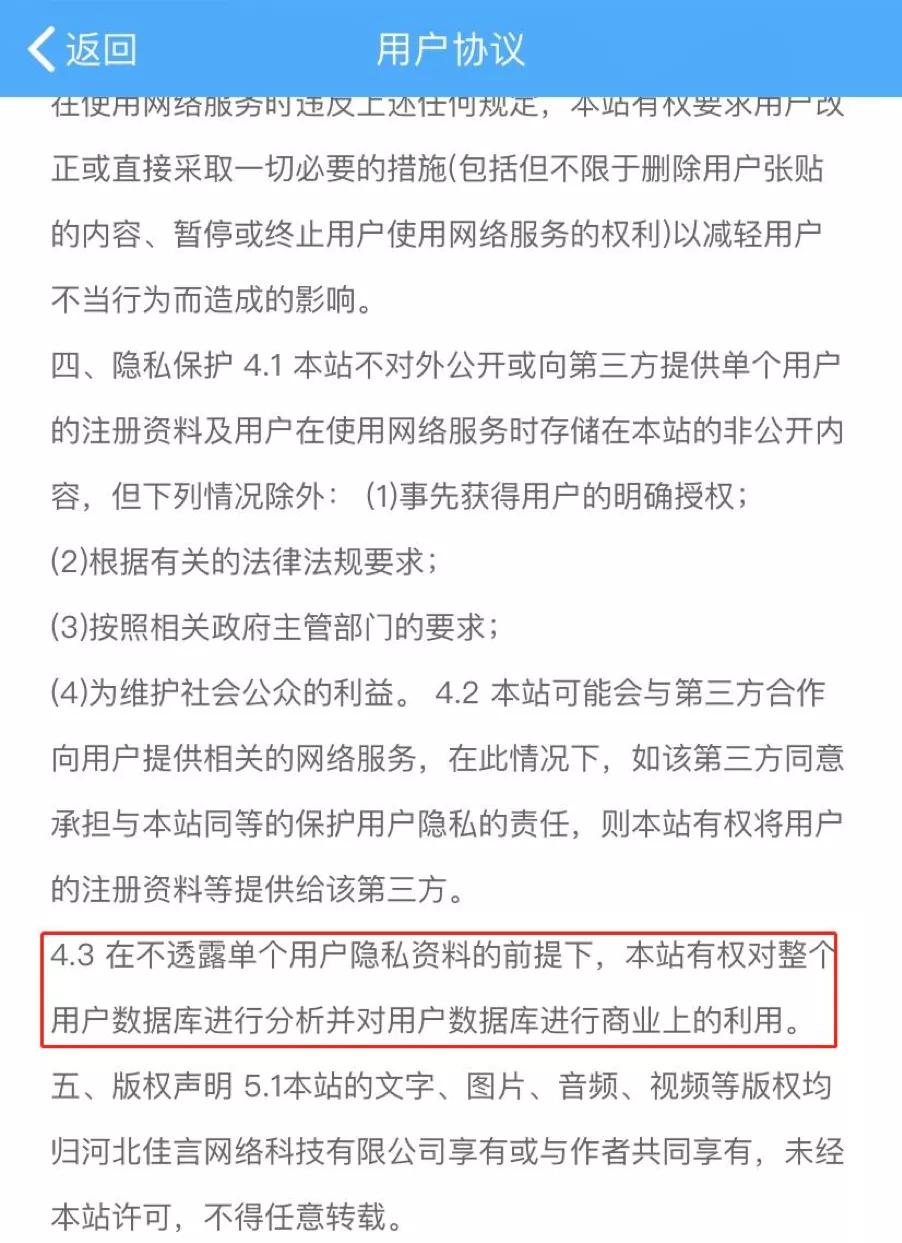 《註冊協議》中提到,“在不透露單個用户隱私資料的前提下,本站有權對整個用户數據庫進行分析並對用户數據庫進行商業上的利用。”由此來看,用户用來註冊登錄客源管家APP的手機號,大概率已經成為了客源管家的“同城客源”。