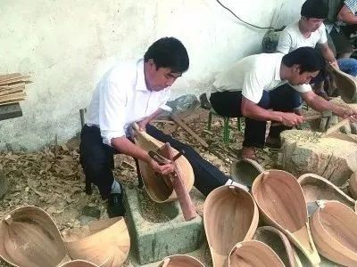 ▲肉孜·巴吾東(左一)與徒弟一起製作都塔爾和彈布爾" alt=“500” />2008年6月,“維吾爾族樂器製作技藝”入選文化部確定的第二批國家級非物質文化遺產名錄。