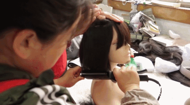 而那些適用於日常佩戴的假髮,製作過程要細膩很多,一根根頭髮被植入“人造頭皮”後,還需要進行專業的修型與拉燙。