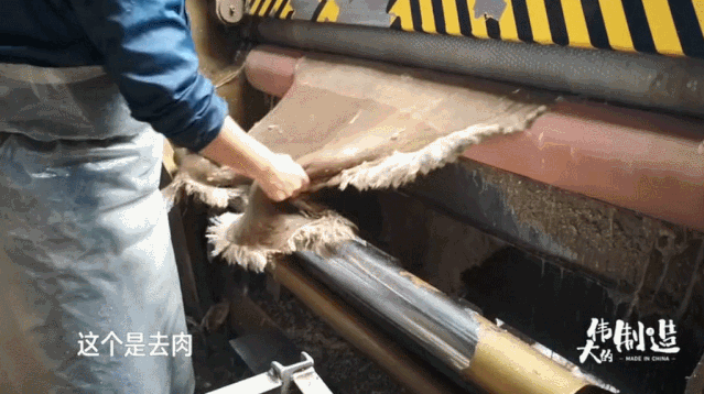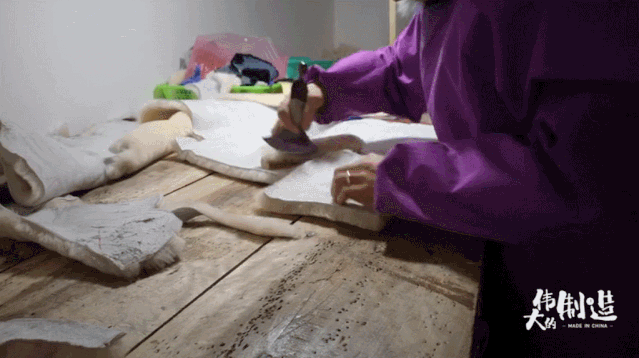 一張羊皮、豬皮運到工廠後,做的第一件事就是把多餘的毛剪掉。