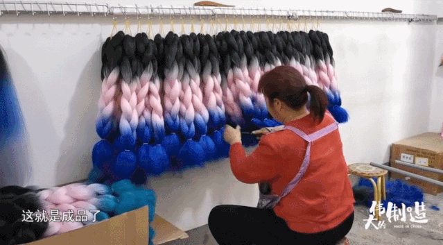 燙染結束後,再經過人工梳理、編織,才算完成。