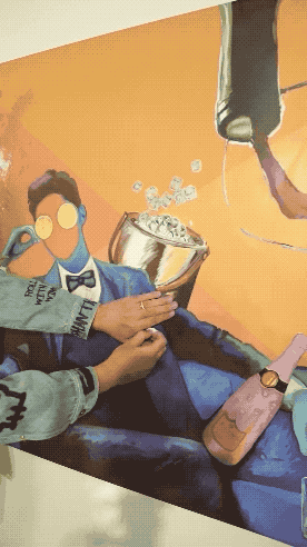 一陣驚訝、歡呼之後,輪到周杰倫的另一位魔術師朋友陳冠霖開始表演魔術了,四個人走到另外一副畫前面,陳冠霖提議不如大家一起表演如何使用魔術調製一杯 Mojito 酒。