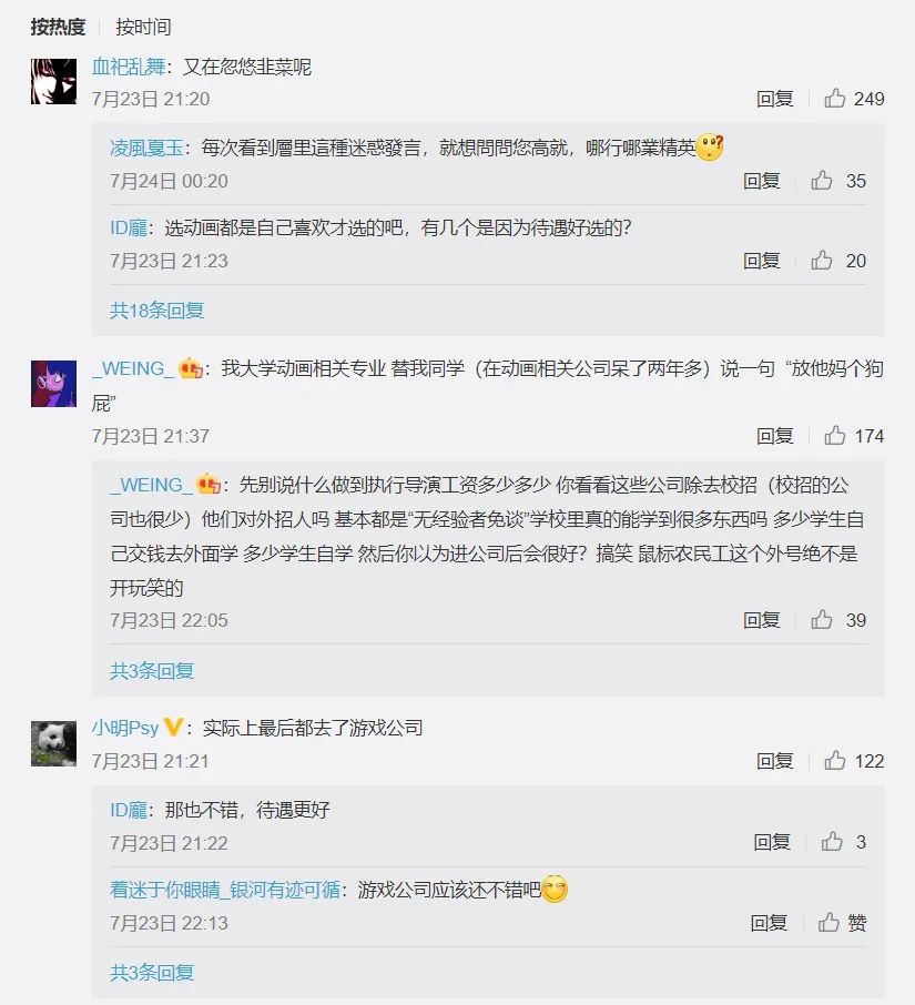 但必須要承認的一點是,國內動畫從業者的收入確實不算高,三文娛此前在《動畫畢業生去哪兒?除了進鵝廠做遊戲,還有這些去向》中採訪了多位動畫專業畢業生和相關從業者,大部分人的工資確實能達到8000以上(我們統計的樣本量也不全面),但相應的考勤相當嚴格。