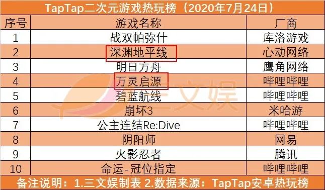 本週TapTap二次元遊戲熱玩榜新晉遊戲有2款: