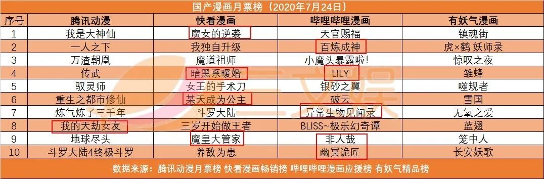 騰訊動漫方面,本週排名榜首的是**《我是大神仙》**,截至7月24日,《我是大神仙》更新到了第322話,累計收穫33.3萬討論數,本週獲得2.7萬張月票。