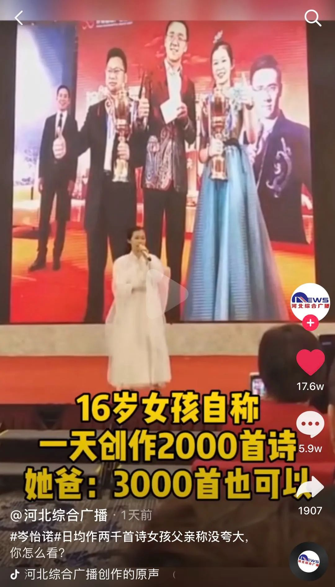 這不,最近又有多位神童刷屏。一個是“研究癌症”,在全國青創賽獲獎的小學生陳靈石。一個是6歲開始寫自傳,目前僅12歲的大專生何宜德。除法我們都會,這自傳應該叫《我的前半生》吧?還有一個是日均作詩2000首,讓乾隆找代筆都打不過的少女岑怡諾。