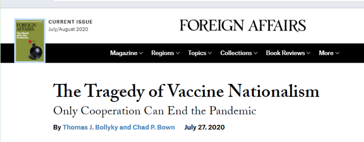 **▲**美國《外交事務》雜誌認為“只有合作才能終結大流行”。