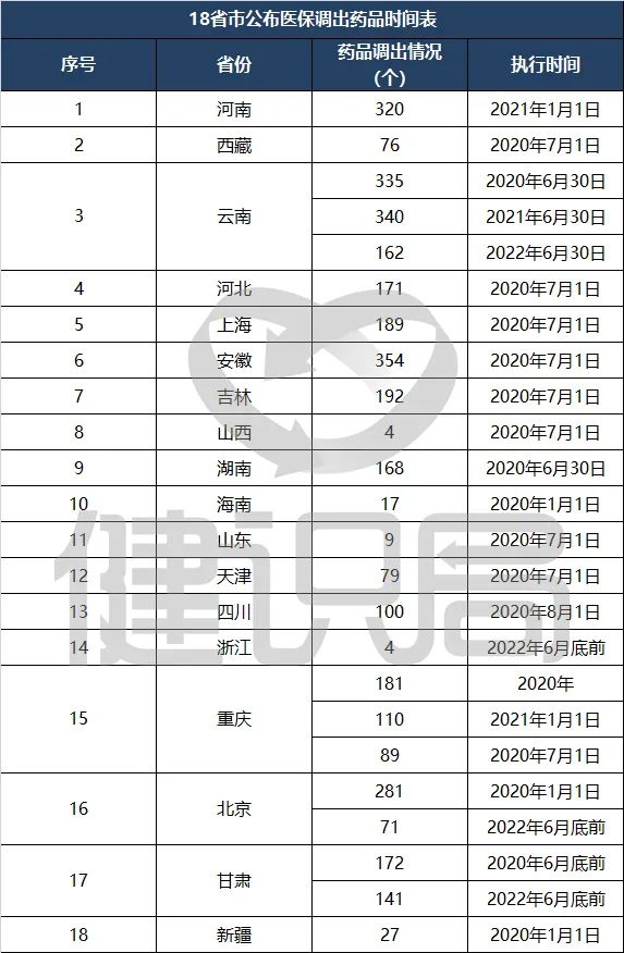 從目前發文情況看,包括湖南、河南、山東,目前已有至少18個省份明確了清出醫保目錄執行時間表。