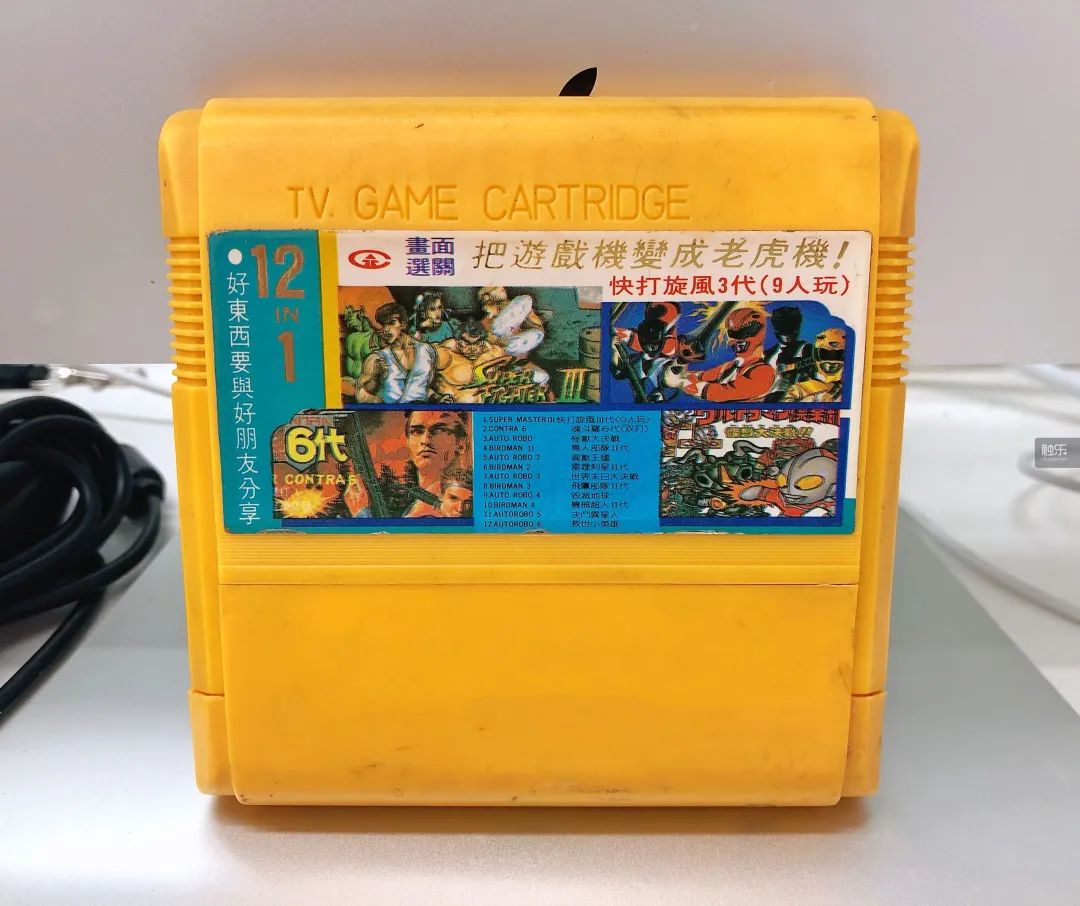 標着“12 in 1”的黃卡實際只包含《9人街霸》《魂鬥羅力量》《恐龍戰隊》和《奧特曼俱樂部》4款遊戲,這也是黃卡的常見套路