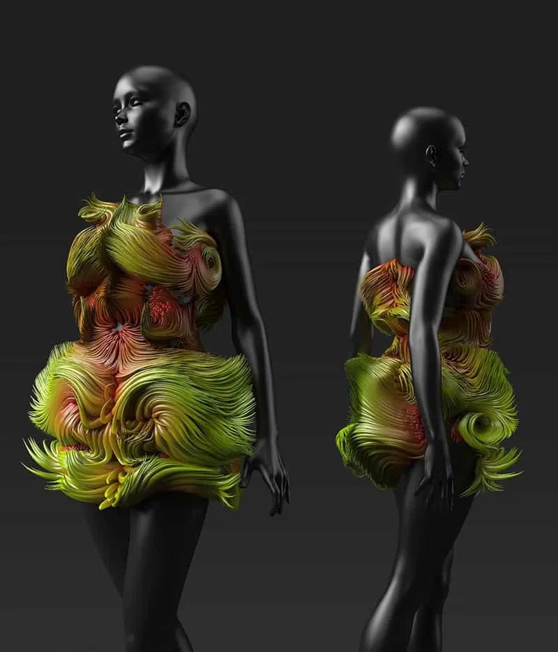 這些“時裝”恐怕不會符合大眾審美,拋開造型,這些衣服最大的亮點是它們使用的材料。