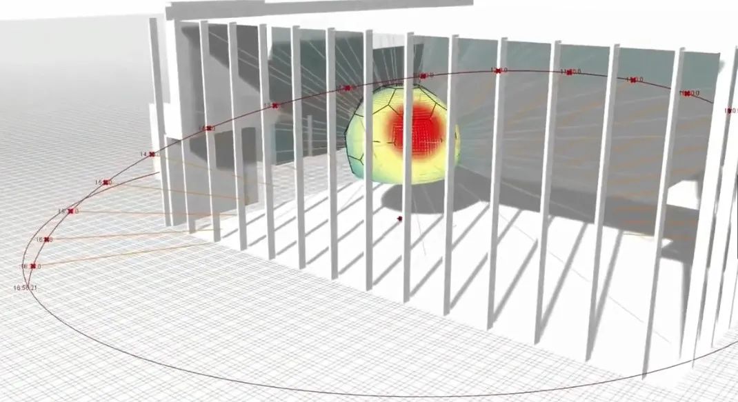蠶的活動會受光照影響,它們喜歡在陰涼環境中結繭。為了讓蠶在合適的位置上工,他們又用計算機模擬分析了這個多面體在大廳中受陽光照射的光熱分佈規律,進而調節多面體的結構和位置。