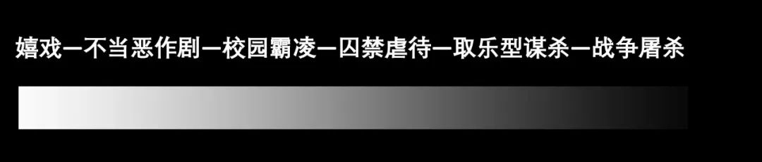 嬉戲、玩過界的惡作劇、校園霸凌、囚禁虐待、取樂型謀殺、戰爭中的屠殺,它們的程度是一點點加深的。