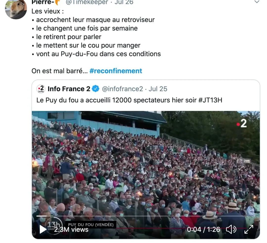 “Puy-du-fou的盛況:口罩都在脖子上”