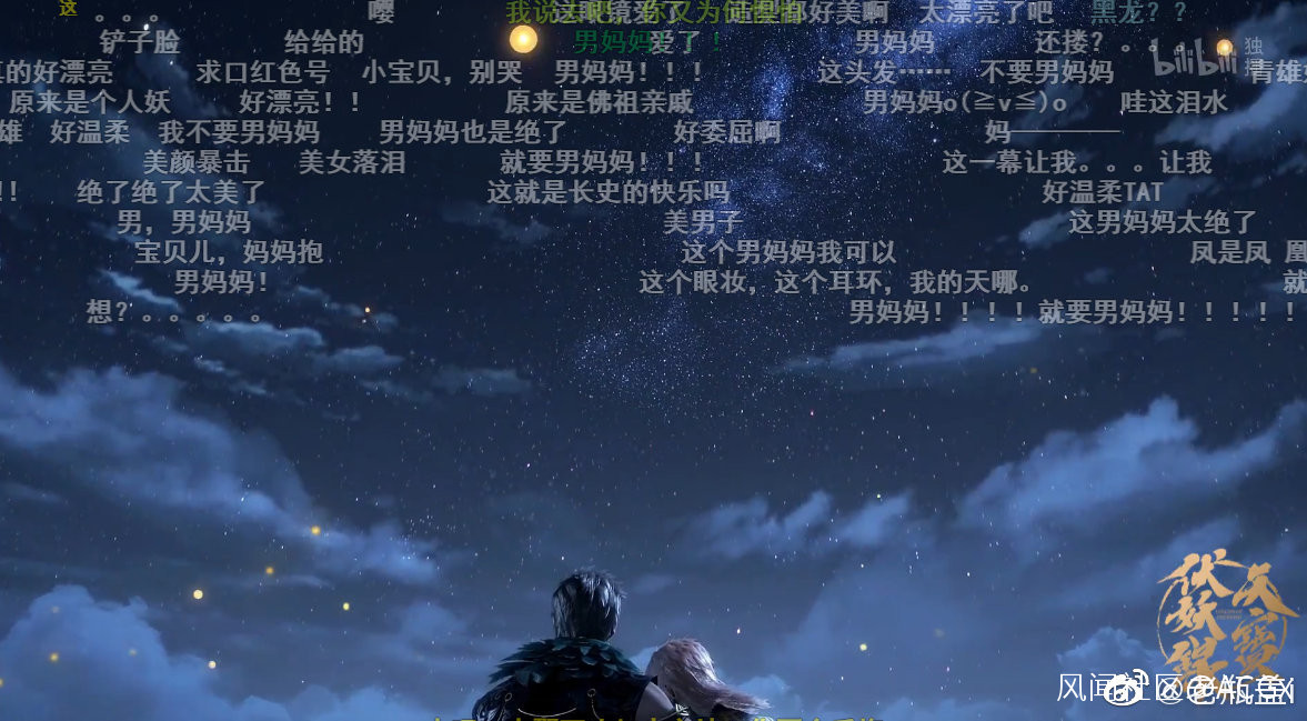 動畫《天寶伏妖錄》的劇情進入回憶殺環節時,男主養父帥氣的面龐被“男媽媽”、“爹咪”等彈幕圍繞。觀眾在社交平台的討論以及二次創作過程中,這些關鍵詞也被反覆提及。