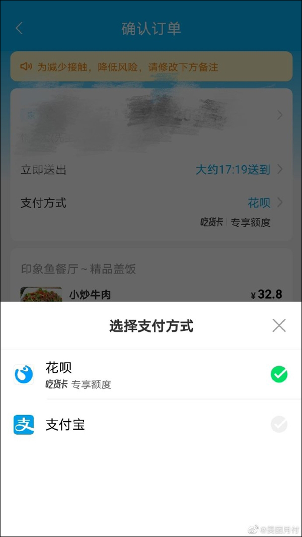 一直以來,支付寶支付在美團付款頁面都處於摺疊狀態,美團用户只有點開摺疊才能使用支付寶支付,而這次,用户點開摺疊頁也無法看見支付寶支付的選項了。
