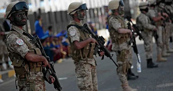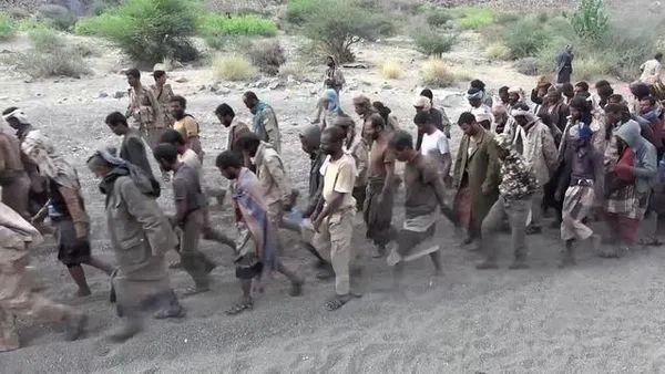 ▲被也門游擊隊俘虜的沙特士兵和僱傭兵