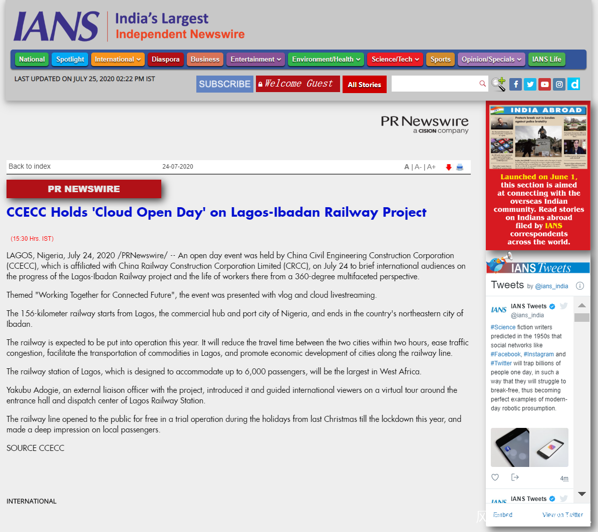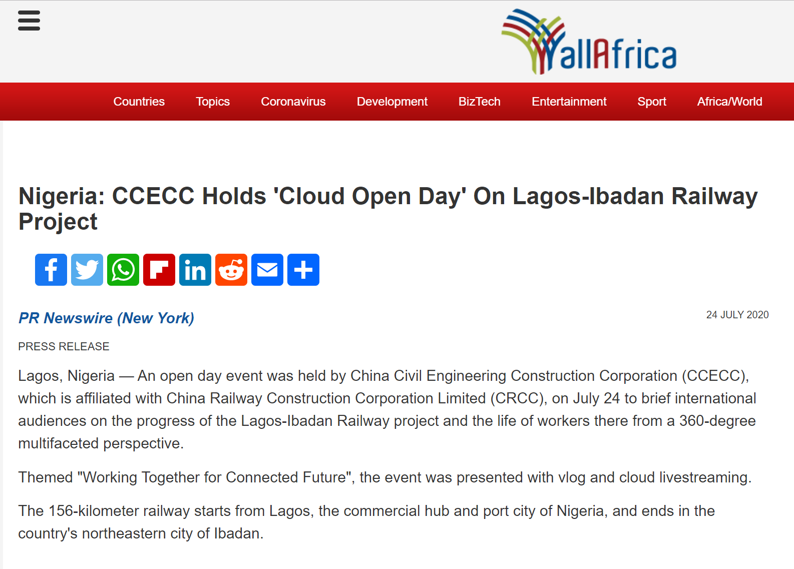 中國鐵建中國土木尼日利亞拉伊鐵路雲開放日引發國內外媒體熱議