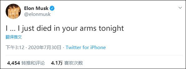 隨後,馬斯克又發推特説:“我……今晚我就死在你的懷裏。”