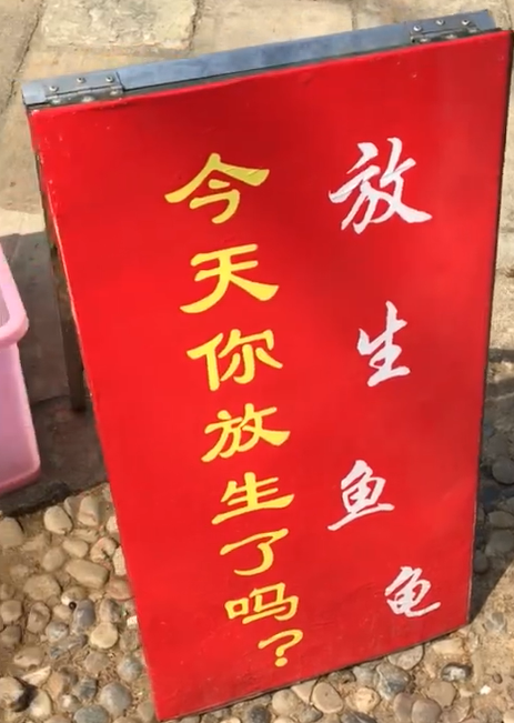 上海七寶古鎮的河邊曾有過更極端的案例,有人專門撈魚賣給路人放生,一名路過女子以每條10元的價格收購。