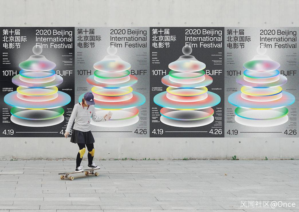 其實北京電影節主辦方對我們很尊重,在設計過程中也沒有太多的修改。在做設計之前,他們提出一定要有風車,因為他們的主標是風車;希望有天壇,因為風車和天壇有風調雨順的含義;另外希望光感、色彩上能夠有電影的感覺。