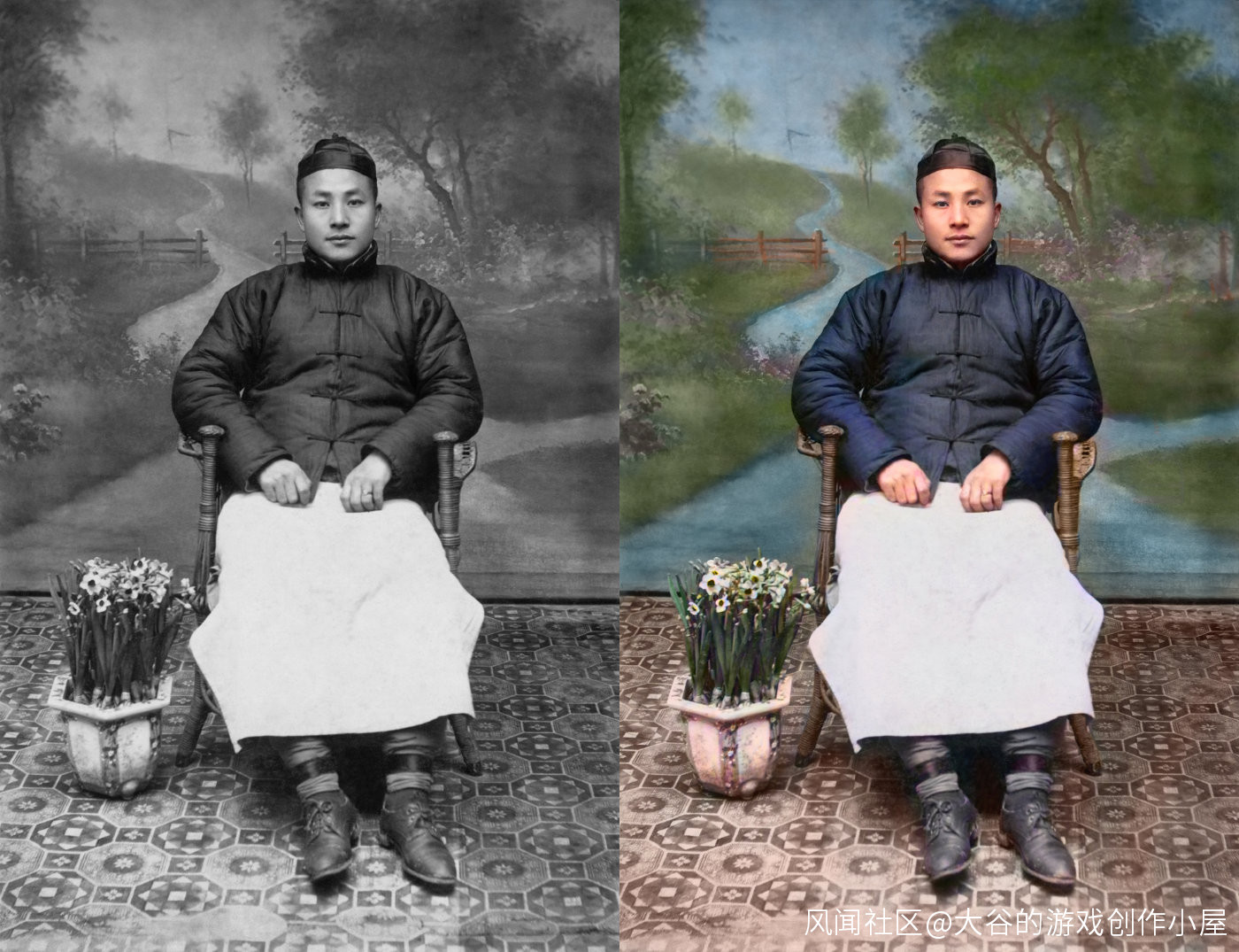原始黑白照片由博友@仝冰雪 收藏,獨家授權@大谷Spitzer 進行AI修復上色~葉景呂的故事,請參考《一站一坐一生》,中央編譯出版社,2018年8月。