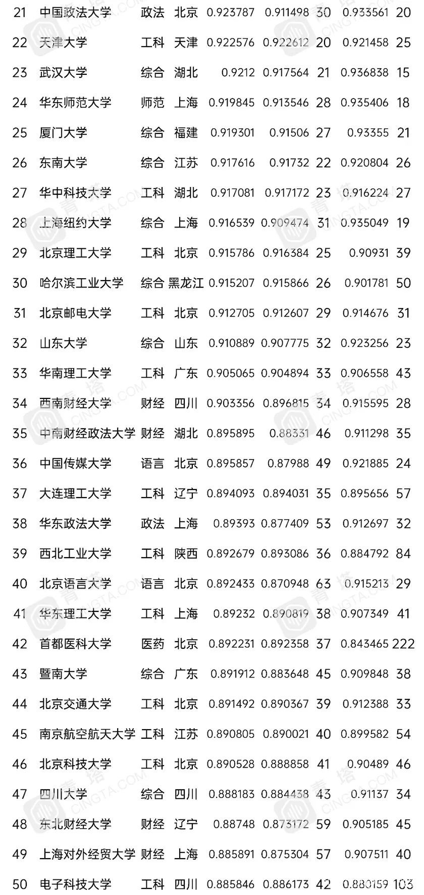 西安交大位居西部地區榜首,科教重鎮武漢暫無高校上榜,C9聯盟中,唯有哈工大沒有進入Top20。