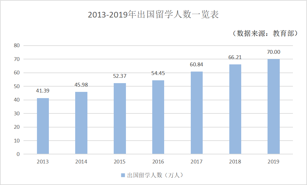 據教育部統計數據顯示,2013-2019年,我國出國留學人數持續增長,與2013年統計的41.39萬人相比,2019年出國人數達70萬人,增長69.12%。2020年開年即受到疫情影響,留學市場環境遇冷,意向留學生數量是否會大幅下跌?