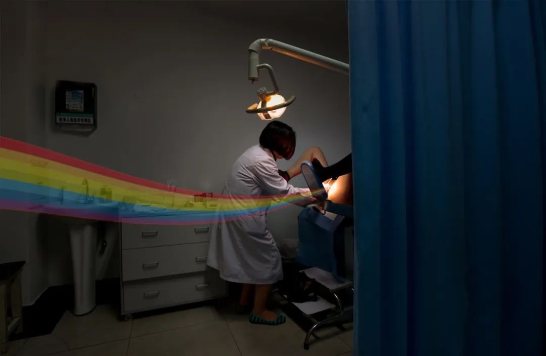 這是一個女性在做手術,我在她的私密處放了一道彩虹出來,叫《Pink Floyd》。